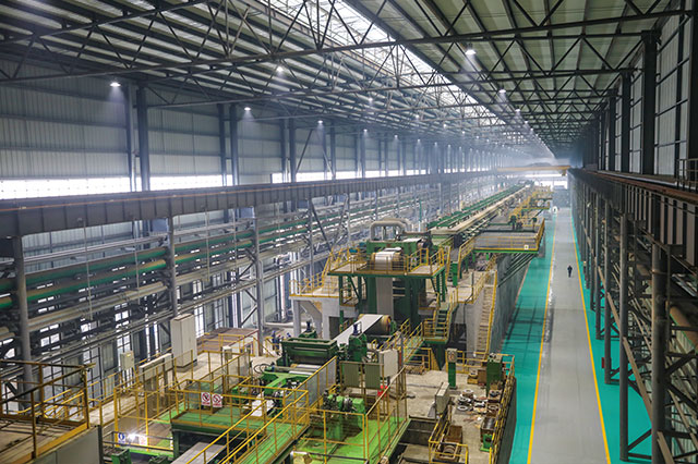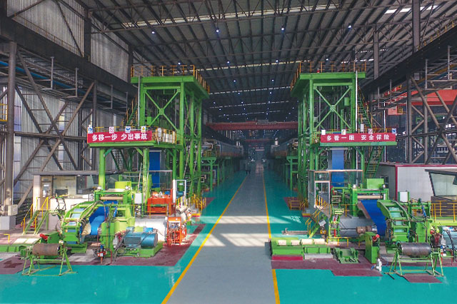 公司擁有1420酸洗冷軋聯(lián)合機組(PL-TCM)一套,機械由中國一重及中冶南方共同設(shè)計制造,電氣采用上海寶信軟件自動化控制系統(tǒng),機組設(shè)備配置合理,整體裝備達到國內(nèi)一流水平。機械設(shè)備涵蓋激光焊接設(shè)備、噴射紊流式酸洗設(shè)備、高精度雙塔式切邊設(shè)備(SMS)、五機架竄輥式UCM連軋機、新型回轉(zhuǎn)式雙卷筒卷取機,軋機電氣采用秒流量控制系統(tǒng)。
